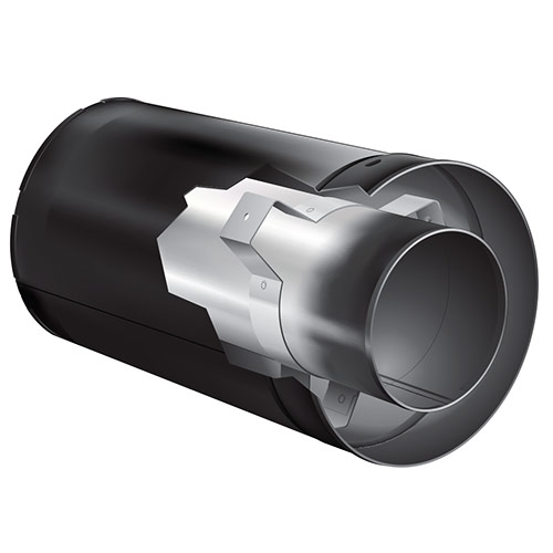 Cutaway illustration showing internal componentry of BDM's direct vent product. This vector drawing utilizes Adobe Illustrator's gradient mesh to achieve a lifelike result.